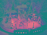 Advent-Anlage auf quadratischer Grundfläche LED beleuchteten Gebäuden,
