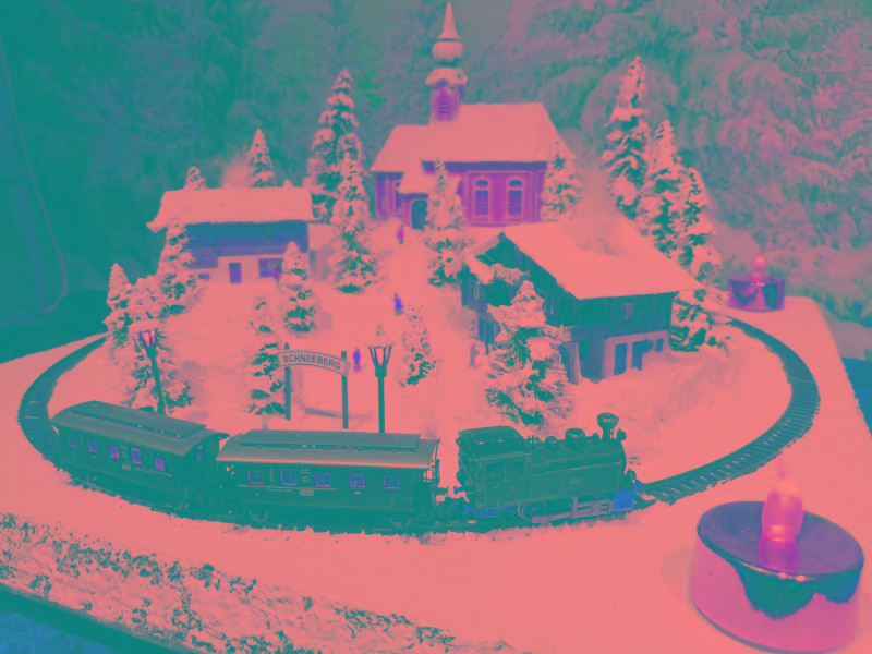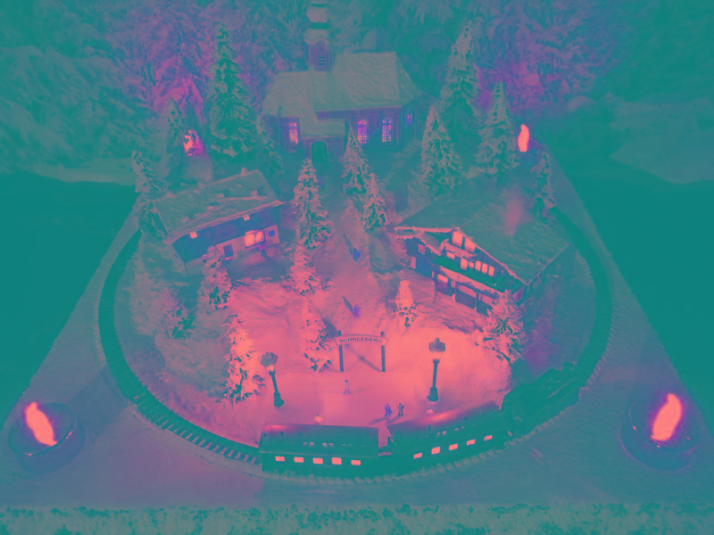 befinden. Nicht nur die schön glitzernde Winterlandschaft mit den beiden LED-Laternen auf dem Bahnsteig, sondern