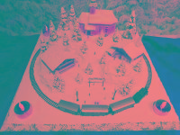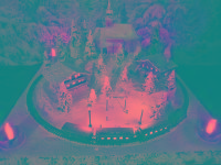 Advent-Anlage auf quadratischer Grundfläche LED beleuchteten Gebäuden,