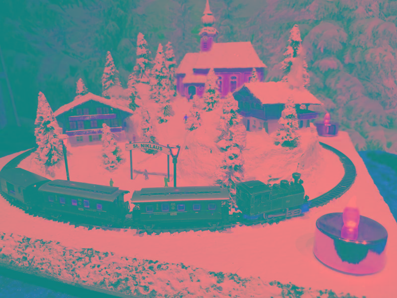 befinden. Nicht nur die schön glitzernde Winterlandschaft mit den beiden LED-Laternen auf dem Bahnsteig, sondern