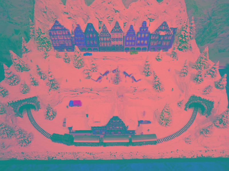 Wunderschöne Winteranlage Spur "N". Ein Gleisoval super schön in weihnachtliche Winterstimmung versetzt. Hervorragende Altstadtkulisse, die romantisch beleuchtet ist.