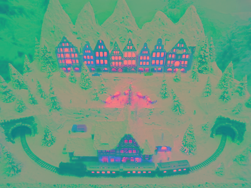 Natürlich darf auch ein mit SMD bestückter Chrisbaum nicht fehlen. Das ganze eingeschneite Gelände glitzert zudem auch noch, was hier auf den Fotos leider nicht so