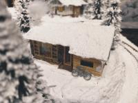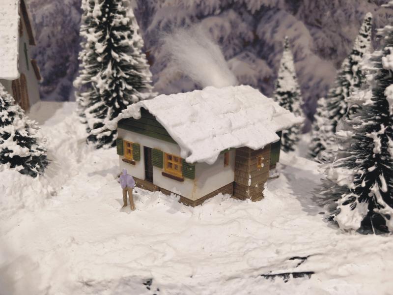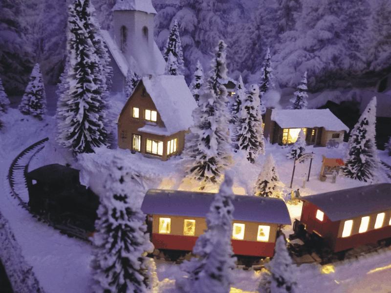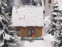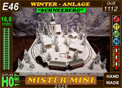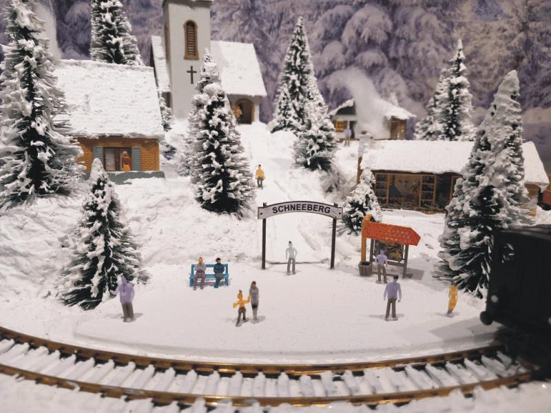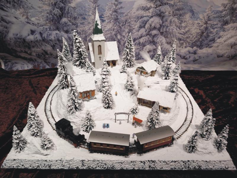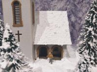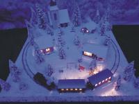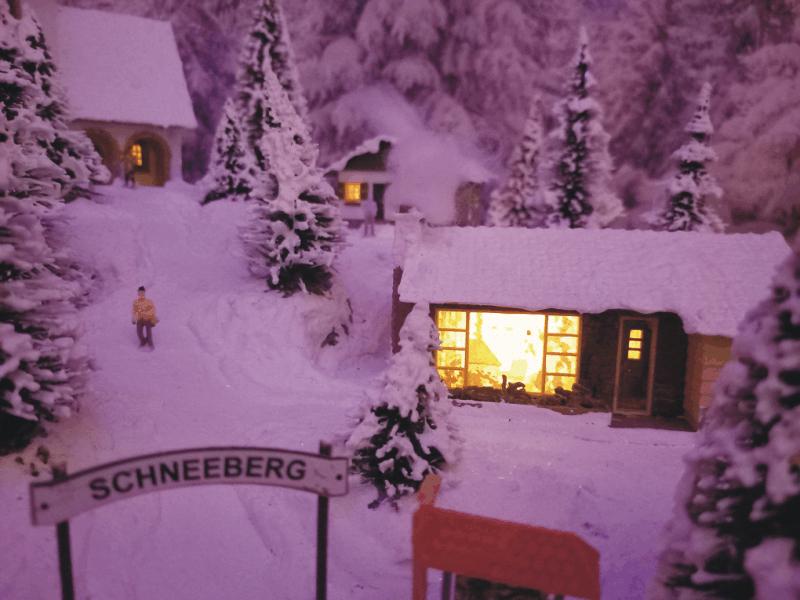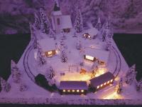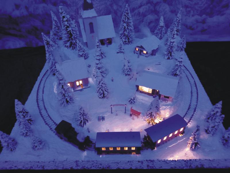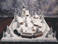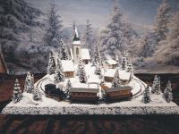 Traumhafte Winter-Anlage "SCHNEEBERG" auf quadratischer Grundfläche. Die Gebäuden, Kirche und Haltestelle,