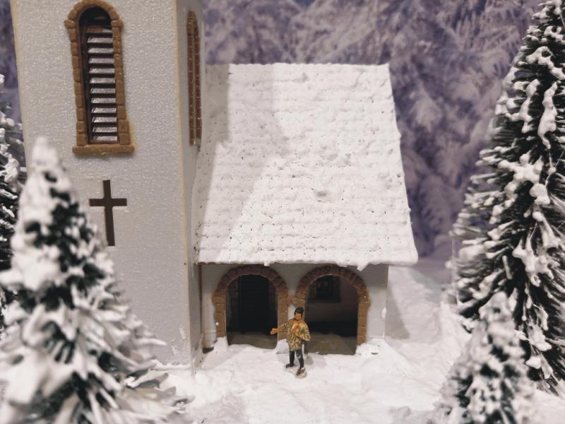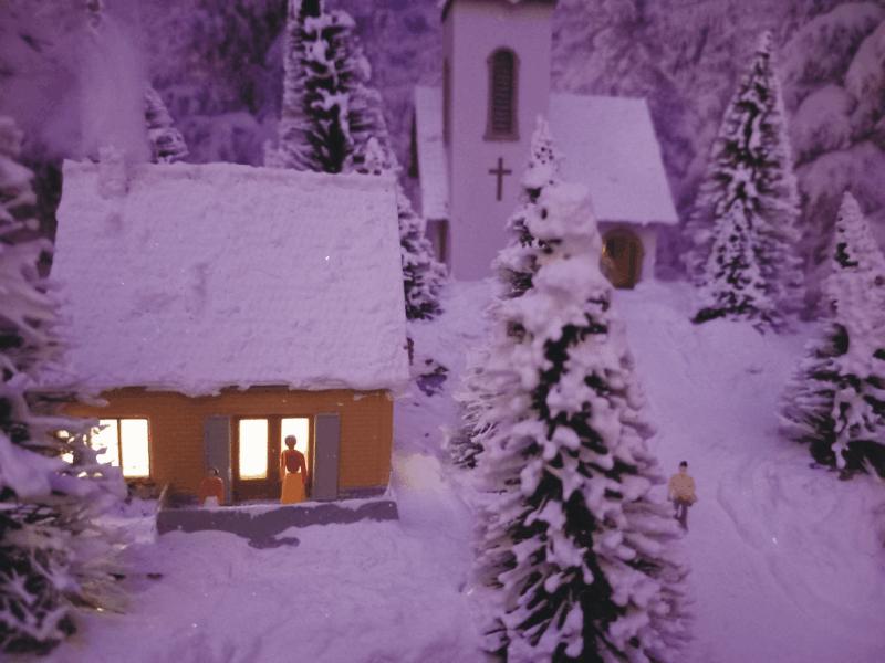 Die Berghäuser und auch die Kirche sind mit LED beleuchtet.