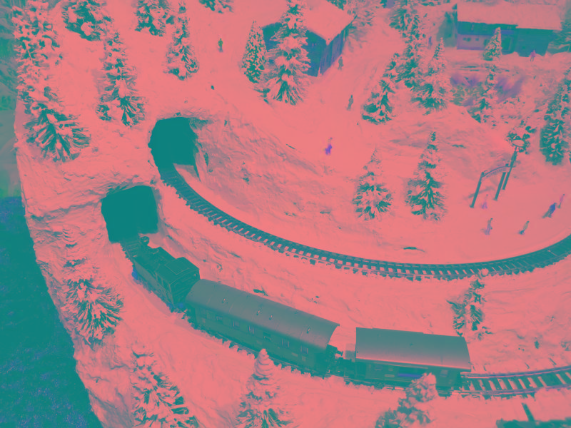 Das Gleis ist eine "verschlungene Acht" und und bildet dadurch einen interessanten Fahrverlauf!