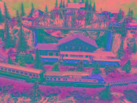 Das untere Gleis ist wie gewohnt als Endlos-Schleife (verschlungene Acht) verlegt und passiert dadurch zwei Ebenen.