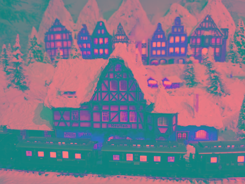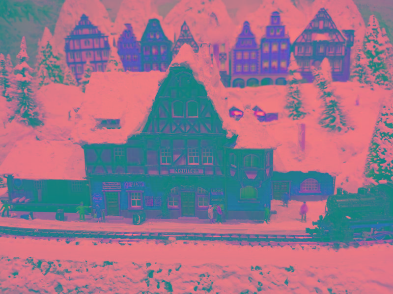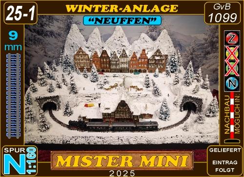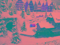 Wunderschöne Winteranlage Spur "N". Ein Gleisoval super schön in weihnachtliche Winterstimmung versetzt. Hervorragende Altstadtkulisse, die romantisch beleuchtet ist.