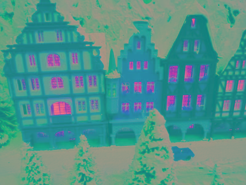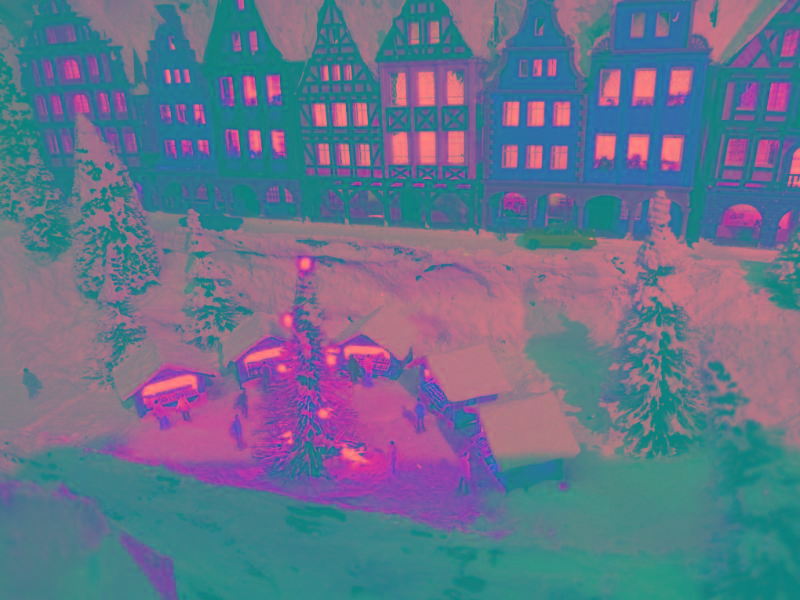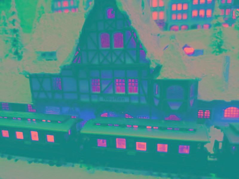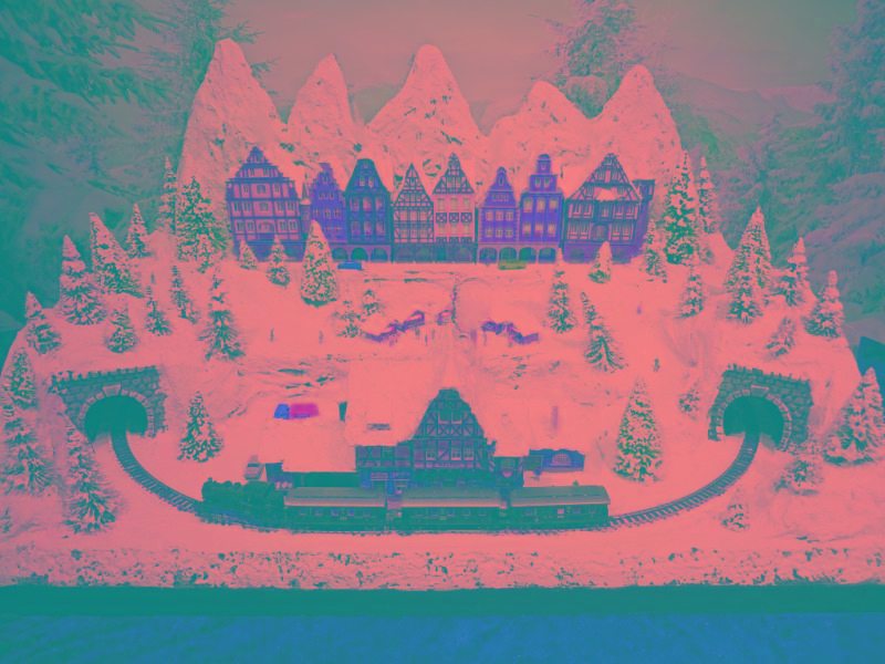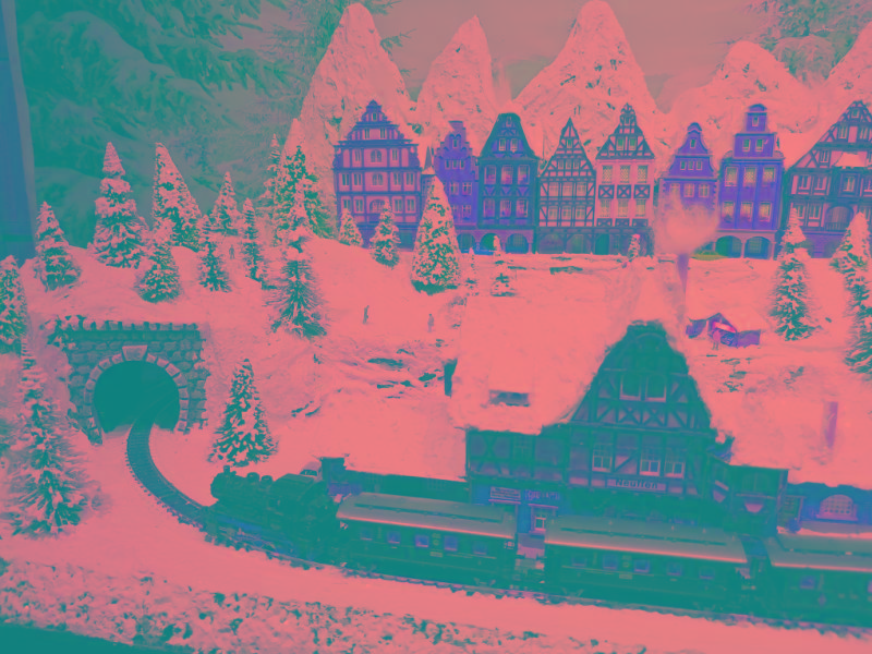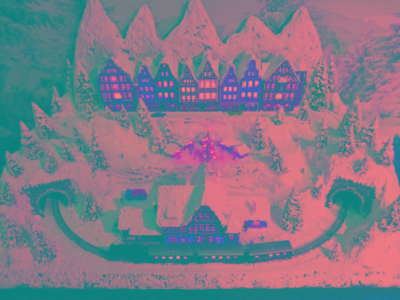 Natürlich darf auch ein mit SMD bestückter Chrisbaum nicht fehlen. Das ganze eingeschneite Gelände glitzert zudem auch noch, was hier auf den Fotos leider nicht so