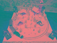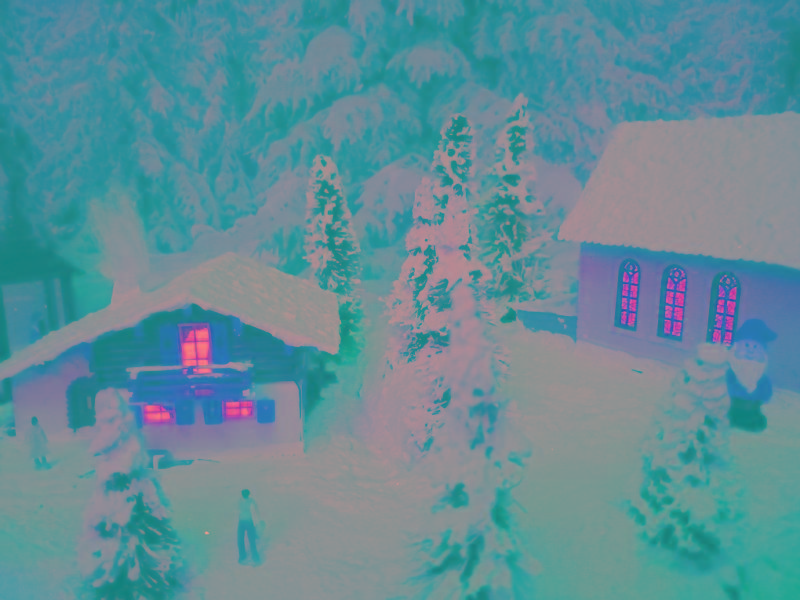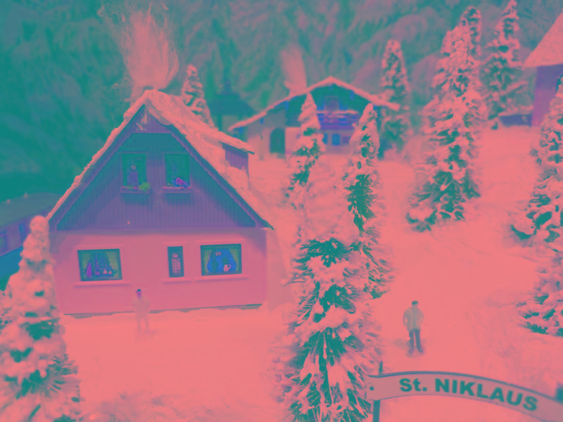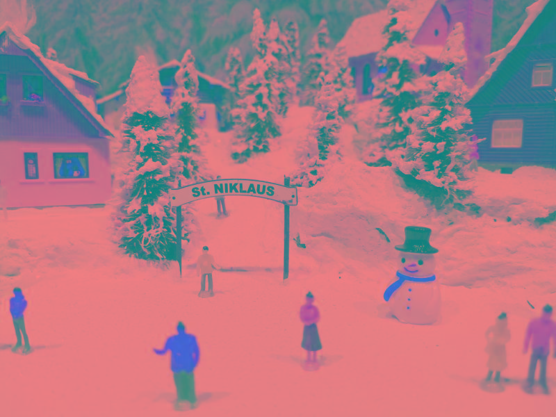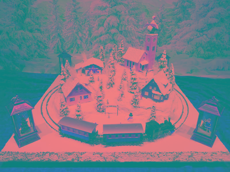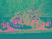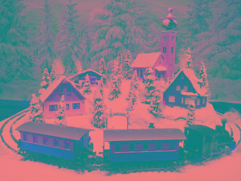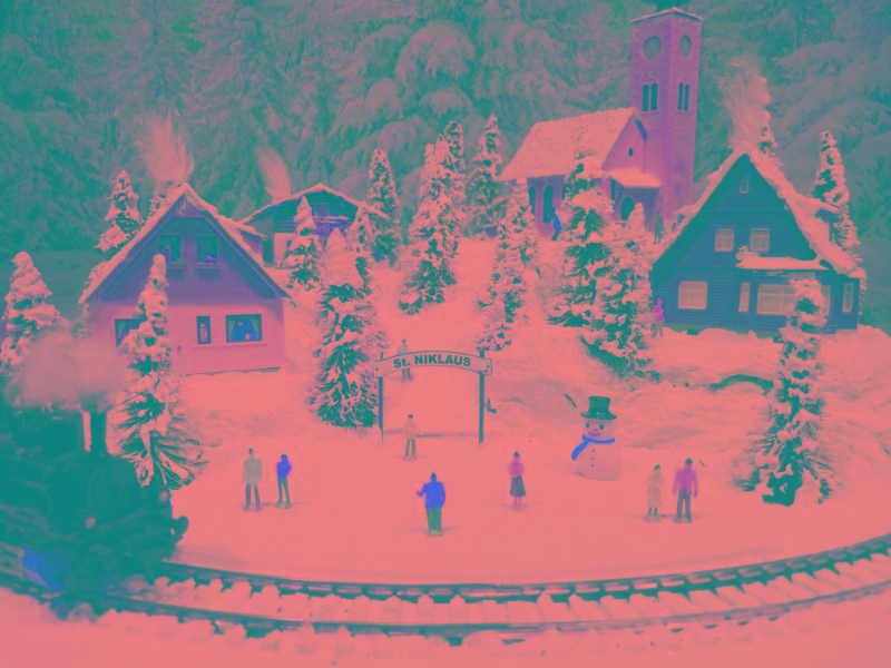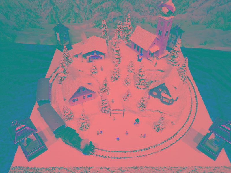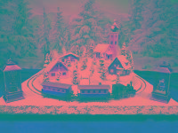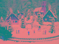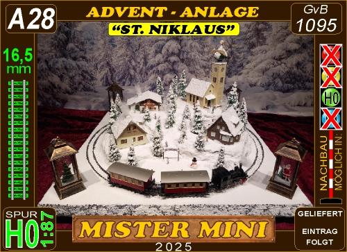 Traumhafte Advent-Anlage auf quadratischer Grundfläche mit vier Advent-Laternen und LED beleuchteten Gebäuden, die sich in einer leicht bergigen Landschaft mit glitzernden Schnee befinden. Nicht nur die schön glitzernde Winterlandschaft, sondern besonders die vier einzeln schaltbaren LED-Laternen runden den Augenschmaus ab. Die LED-Laternen stehen nur lose auf den Ecken und haben eigene Knopfzellen zur Stromversorgung. Sie werden mit der Anlage mitgeliefert. Die Anlage besitzt zwei getrennte Anschluß-Kabel für Zug und Beleuchtung extra! Einfach einen herkömmlichen Eisenbahntrafo anschließen. Der Gleisradius beträgt 250mm. Fahrtrichtung ist beliebig. Die Anlage kann sowohl analog, als auch digital betrieben werden!