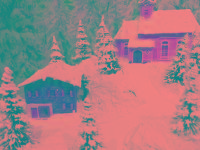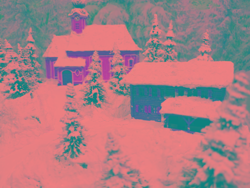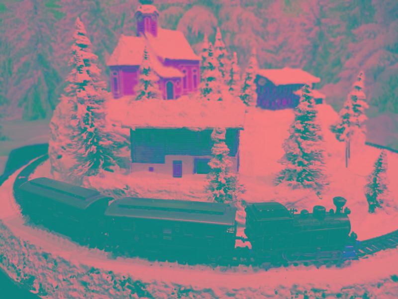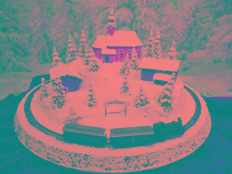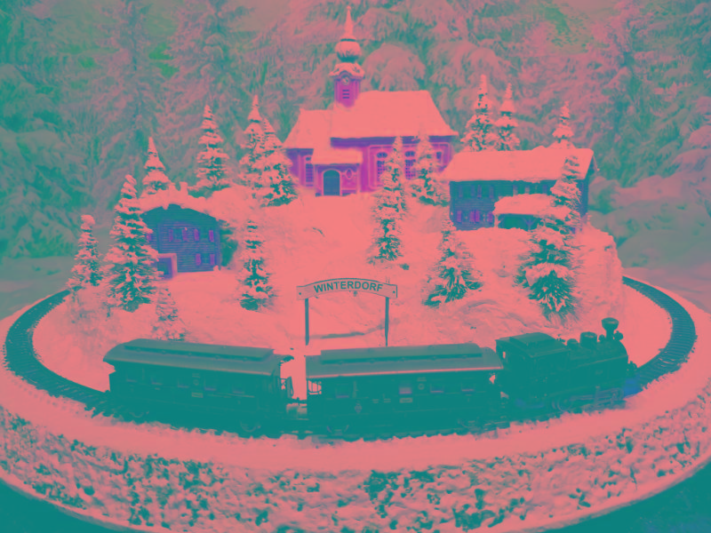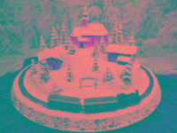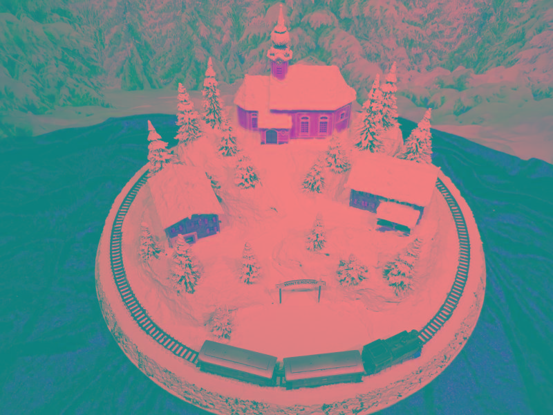 Schnee befinden. Die schöne Kirche bildet hier den Blickfang, während der Zug bei jeder Runde neue Besucher und Passagiere bringt und holt.