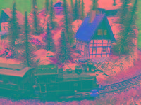 Als Stromversorgung wird ein ganz normaler Eisenbahntrafo verwendet. Die regelbare Gleichspannung für den Zug und die Zubehörspannung für die Beleuchtung.