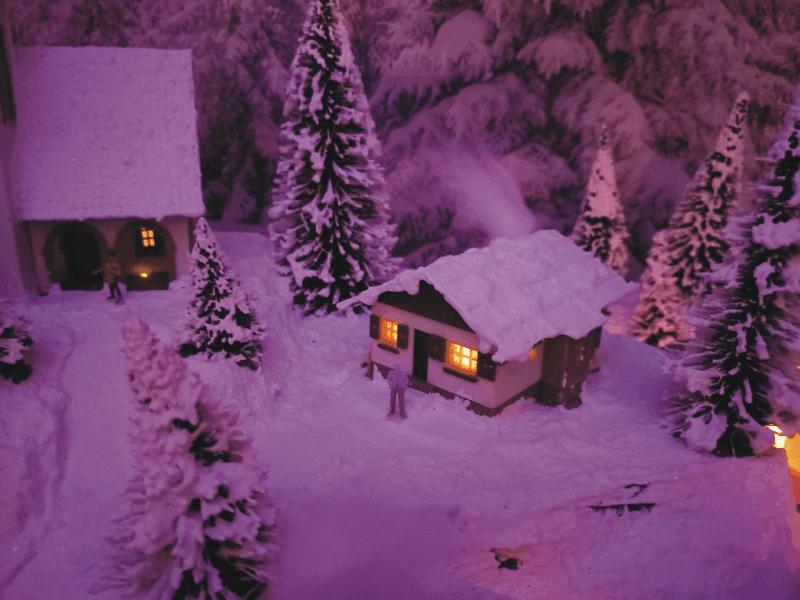 Traumhafte Winter-Anlage "SCHNEEBERG" auf quadratischer Grundfläche. Die Gebäuden, Kirche und Haltestelle,