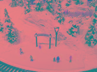 Wanderwege führen vom beleuchteten Bahnsteig hinauf zu den Berghäusern und zur Berg-Kapelle!