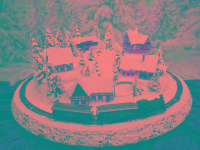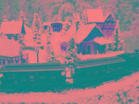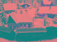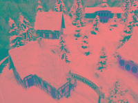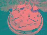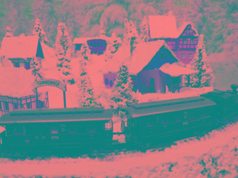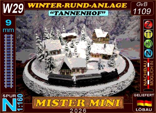 Wundervolle Winter-Rund-Anlage "TANNENHOF" mit sogar fünf Gebäuden inkl. Bahnhof, die sich in einer leicht bergigen Landschaft mit glitzernden