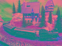 Die Anlage besitzt zwei getrennte Anschluß-Kabel für Zug und Beleuchtung extra! Einfach einen herkömmlichen Eisenbahntrafo anschließen und ab geht die Fahrt!.