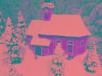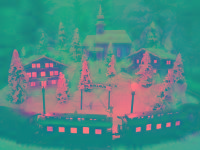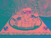 Advent-Anlage auf quadratischer Grundfläche LED beleuchteten Gebäuden,