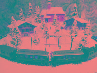 die sich in einer leicht bergigen Landschaft mit glitzernden Schnee